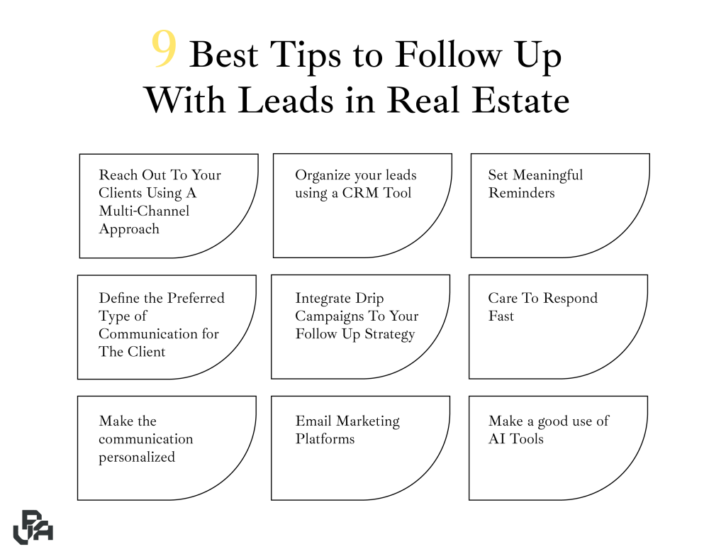 When it comes to follow-up in real estate, it is not one strategy for all. Real estate is a very sensitive field. You should mix and match the tools and practices and apply them according to potential clients’ needs and interests. Here are the most important tools that myVPA recommends: